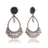 Women’s Silver Circle Long Three Rhinestone Unique Western Earrings for Women Party Wear