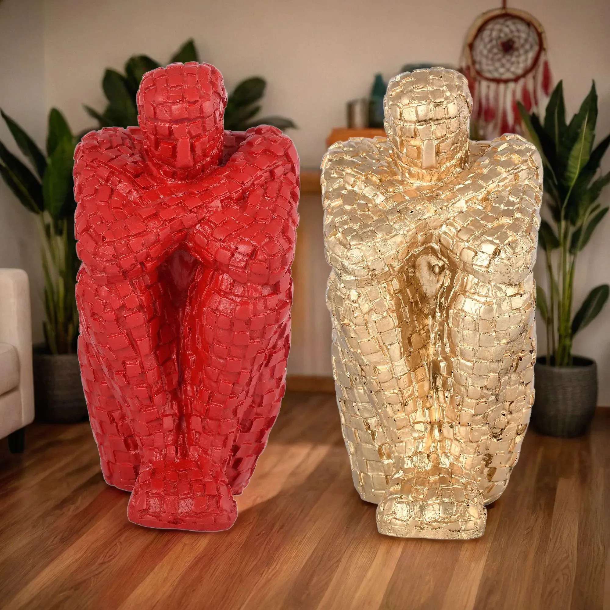 Handcrafted Thinking Mens in Sitting Position for Home Decor/Gifting/Living Room Decorative Showpiece – 20 cm (Polyresin, Red, Gold)