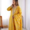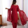 Women’s Chinon Silk Embroidered Straight Kurti with Pant And Dupatta Set
