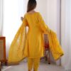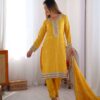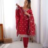 Women's Chinon Silk Embroidered Straight Kurti with Pant And Dupatta SetWomen’s Chinon Silk Embroidered Straight Kurti with Pant And Dupatta Set