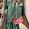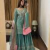 Women’s Chinon Silk Heavy Embroidery Straight Kurta With Sharara and Dupatta set