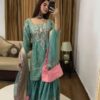 Be the first to review “Women’s Chinon Silk Heavy Embroidery Straight Kurta With Sharara and Dupatta set” Cancel reply