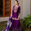 Women’s Chinon Silk Heavy Embroidery Straight Kurta With Sharara and Dupatta set