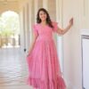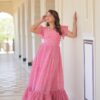 Be the first to review “Women’s Cotton Floral Printed Ruffle Anarkali Gown Dress (Pink)” Cancel reply