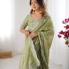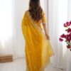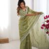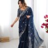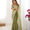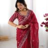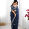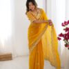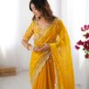 Drape yourself in elegance with this stunning Jimmy Chu saree, featuring intricate thread and sequence work. The saree measures 5.5 meters and is available in 5 captivating colors, weighing a comfortable 0.850 grams. The ensemble includes an unstitched Jimmy Chu blouse with inner lining, also adorned with matching thread and sequence work on both front and back, sized at 0.80 CM. This exquisite set is priced at ₹4,899.00.