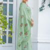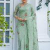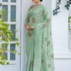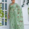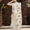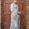 Elevate your style with this exquisite Pure Shiny Zari Chiffon Saree, featuring captivating cutwork and embroidery throughout its expanse. The saree boasts charming cross-stitch flower work meticulously spread across the fabric. It is gracefully teamed with a complementary blouse adorned with all-over buttis. This stunning and intricately detailed saree is available for ₹4,899.00, promising a radiant and elegant look.