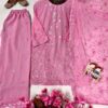 Women’s Georgette Embroidery Work Straight Kurta With Sharara Suit and Dupatta Set