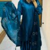 Women’s Chinon Silk Heavy Embroidery Straight Kurta With Sharara and Dupatta set