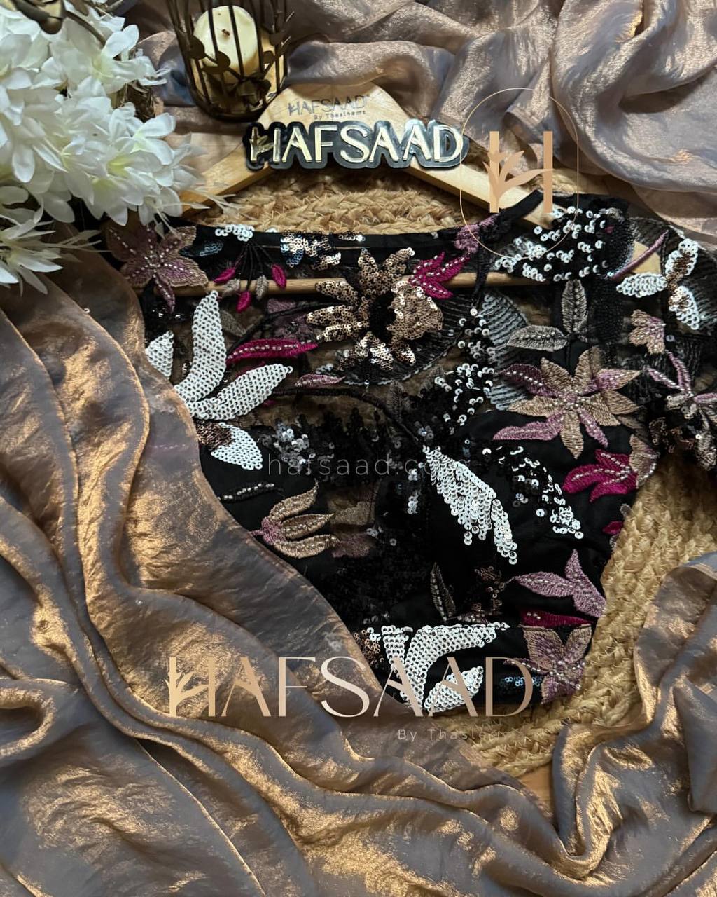Women’s Classic Black Shimmer Saree with All-Over Sequin Embellished Blouse Piece