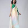 Women’s Modern Dual-Tone Peach & Off-White Satin Silk Kaftan Saree with Digital Print Neck Design