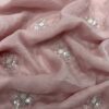 Women’s Soft Pink Organza Saree with Delicate Pearl & Sequin Floral Embroidery – Lightweight Sheer Drape for Festive, Wedding & Party Wear